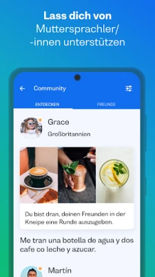 Lernen Sie mit Busuu Sprachen in effizienten, kurzen Lektionen. Treten Sie in Kontakt mit Muttersprachlern und erfahrenen Lehrkräften für persönliche Unterstützung. Erreichen Sie Sprachkenntnisse schneller und effektiver.