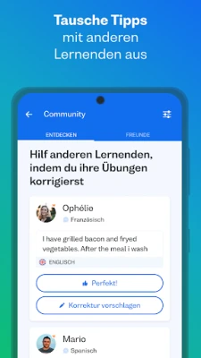 Das Herzstück des Lernerfolgs bei Busuu sind die dynamischen und sorgfältig strukturierten Kurse. Von grundlegenden Vokabeln und korrekter Aussprache bis hin zu spezialisierten Themen wie Business-Englisch mit renommierten Partnern oder kulturellen Einblicken ins Spanische – die Inhalte passen sich Ihrem Niveau an. Doch Busuu ist mehr als nur eine Lern-App: Treten Sie einer lebendigen globalen Gemeinschaft von über 120 Millionen Lernenden bei. Hier erhalten Sie authentisches Feedback von MuttersprachlerInnen, üben reale Konversationen und bringen Ihre Zielsprache direkt ins Leben, mit ständig erweiterten Materialien wie Spanischübungen zu El País-Artikeln oder japanischen Manga-Lektionen.