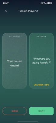 Das Spielerlebnis mit **Send or Drink** ist fließend und intuitiv. Zunächst gebt ihr die Namen aller Mitspieler ein und wählt anschließend ein passendes Thema, das die Stimmung eurer Gruppe perfekt widerspiegelt. Wenn du an der Reihe bist, präsentiert dir die App eine einzigartige Herausforderung: Eine freche Botschaft wartet darauf, an einen ausgewählten Kontakt gesendet zu werden. Solltest du dich dieser Aufgabe nicht stellen können oder wollen, nimmst du stattdessen einen Drink. Entdecke eine breite Palette an Themen, von locker-leichten Aufgaben für den Einstieg bis hin zu "Absolutem Chaos" für jene, die keine Scheu vor Überraschungen haben.